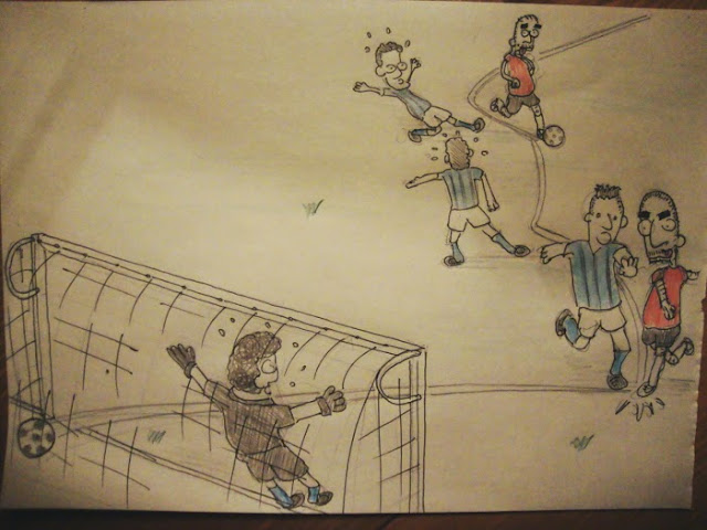 stupid dave viene invitato a tappare un buco per una partita di calcio a 7. fuori allenamento, da mesi senza attività fisica che non siano gli addominali al bancone, fiato corto, muscoli flaccidi. tuttavia, il suo avere ancora idea di come si giochicchi a pallone viene fuori, alla distanza, ma viene fuori. al 90° minuto ruba palla, punta la porta ancora lontana, salta in scioltezza (sebbene con la vista annebbiata dalla fatica IMMANE) un tris di avversari a deposita nell'angolo più lontano con un piattone mancino sapido, dove il portiere non può arrivare! che soddisfazione! soprattutto perchè si stava quasi infortunando preparando la sacca da calcio (lo giuro!).
