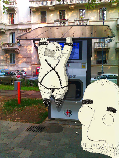 il giorno dopo c'è meno gente alla casa dell'acqua, anche se basta e avanza per temere per la propria incolumità. sadomasokino è l'unico in città che non ha capito come funziona: non è un percorso fitness! e poi, "fitness" di cosa? se c'è una cosa che rappresenta sadomasokino è proprio la mancanza di salute e benessere (mentsale più che altro).