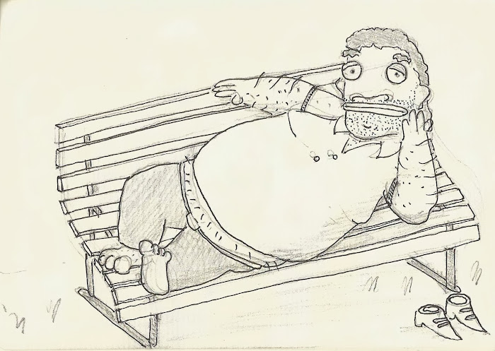 durante la pausa pranzo ho incontrato il compare del baffo michelass, un panzone bello sdraiato all'ombra su una panchina, come se fosse tutta sua, come su un divano. ti guardava con lo sguardo a mò di "mbé? sono a casa mia e faccio quello che voglio!". tocco di classe? senza scarpe. fantastico.