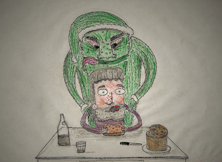 una presenza demoniaca rovina il magro e povero natale del buon (?) giuanìn. intento ad addentare una fetta di panettone-discount, viene interrotto