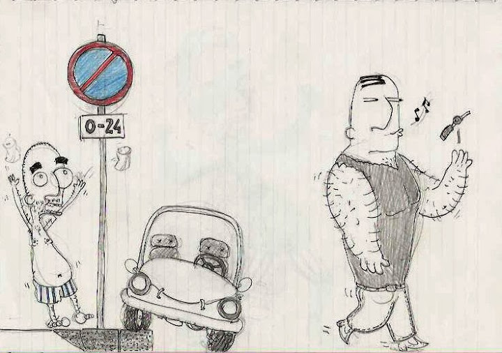 come? come si permette quel losco figuro di parcheggiare in divieto e senza tagliandino della zona?