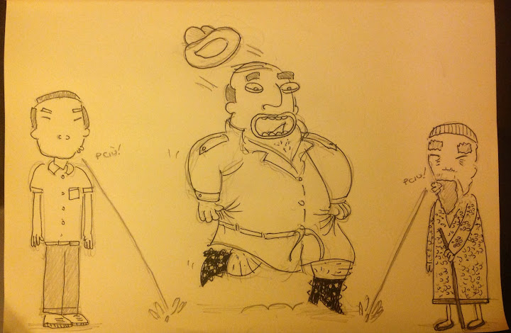 Occhio sadomasokino! Da poco arrivato in Cina, occorre abituarsi agli usi e costumi locali per farsi amici gli autoctoni e risolvere il nuovo intricato caso. Prima regola: schivare le immani scaracchiate di questi lama orientali! Gli uomini cinesi non fanno altro che prepararsi un enorme catarro in bocca per espellerlo vicino ai piedi del prossimo passante! Non vi era posto più consono ove iniziare le ricerche del maltolto? Proprio fino qui dovevi venire per seguire la pista dell' "all you can eat"? Contento tu, tanto la nota spese verrà pagata dallo stupidotto di turno!