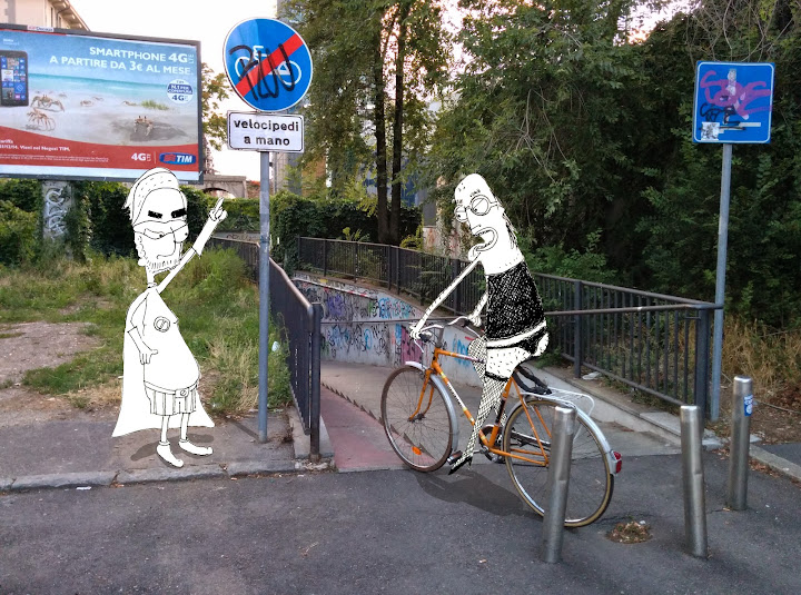 Contro il dilagare estivo dell'ignoranza post-sbronzamondiale, Captain 0-24 scende in campo col suo moralismo da quattro soldi. Basta col solito bersaglio degli incivili automobilisti milanesi, troppo facile. Anche i ciclisti meritano un pò di pelosa attenzione e sana educazione stradale. Ocio però! Non sai mai come potrebbe reagire un Giampi qualunque! Captain 0-24: sconfitto anche questa volta, forse peggio degli schiaffi presi in passato.