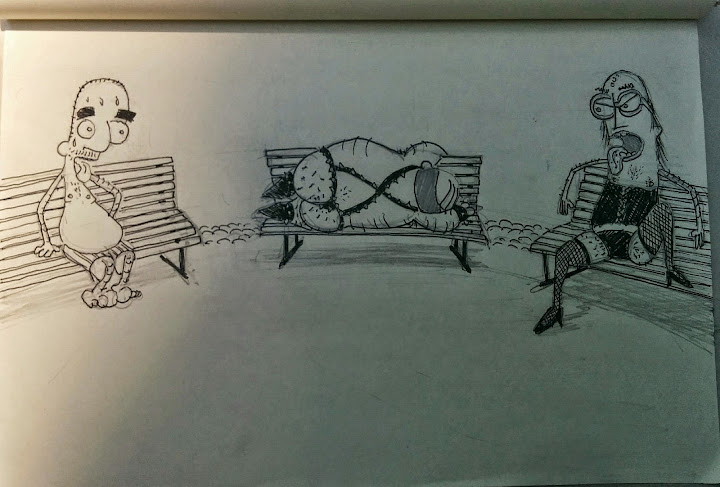 Piccola nota sull'opera (?): non avendo tempo di tornare a casa e disegnare l'ombra che protegge i pessimi elementi mentre il sole frigge Stupid Dave, non ho trovato nulla di meglio che utilizare l'ombra naturale