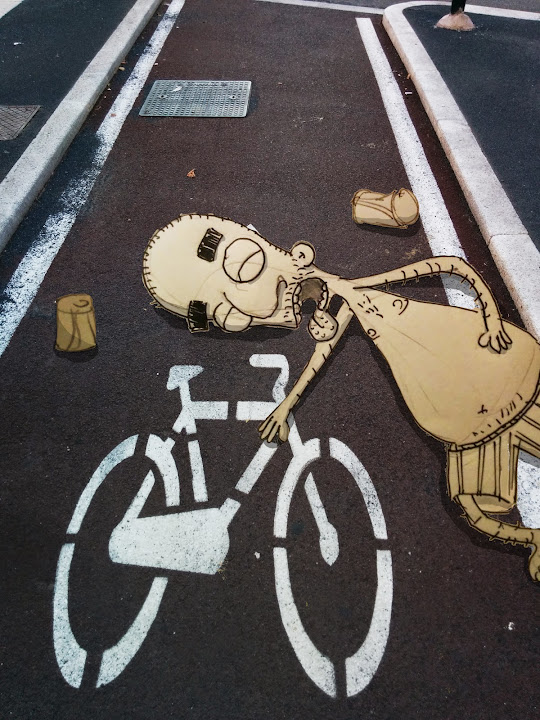 Le poche e frammentate bike lane di Milano sono l'occasione per strisciare esanimi dopo essersi ubriacati di ottima AXX baço preçio (ovviamente), bravo Stupid Dave, complimenti. Dedicato a tutti quelli che camminano e cazzeggiano nelle piste ciclabili come se fossero dei marciapiedi, levatevi dai coglioni! Fareste lo stesso in mezzo a una strada? Vai, vai a giocare col pallone in autostrada...