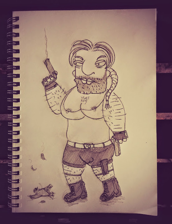 Spaventata/o dalla mobilitazione guerresca del solitamente insulso e dimesso Giuanìn, anche Tyra Melsoux prende atto della pericolosità degli storni. Eccola/o in versione eroina (ce ne vorrebbe in vena per dimenticare l'agghiacciante visione) dei videogame, pronta per sterminare i volatili: a Milano di uccello ne resterà solamente uno. Il suo. °_°