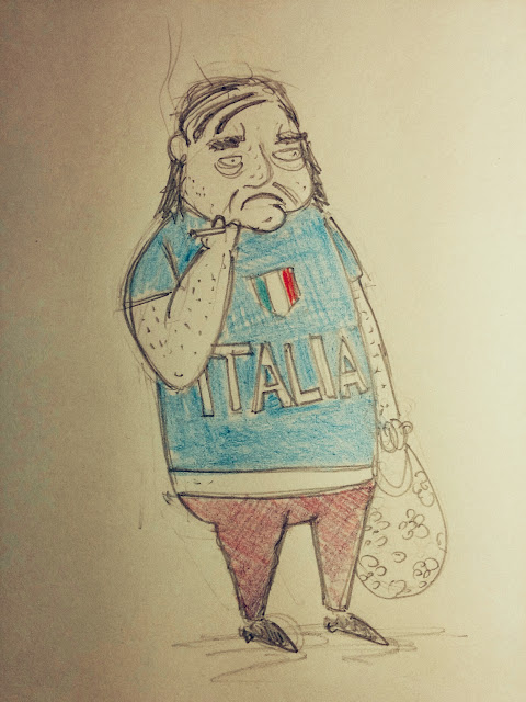Avrebbe proprio bisogno di un pò di aria fresca sparata in da face questo misero omuncolo notato lunedì pomeriggio verso le 19, in attesa di un bus in una fermata che è difficile definire tale in quanto era presente solo un palo arancione. Riportone sudaticcio e calato sulle tempie, sigarettino in una mano, sportina nell'altra, magliettone cotonatissimo azzurro con scritta "ITALIA", pantaloni viola, fisico abbastanza improponibile ma vista l'età avanzata ci sta. Dire "lucido" sarebbe un controsenso, ma il suo sguardo perso in lontananza mi fa ipotizzare che "sapeva" che di lì a poco l'autobus sarebbe arrivato! Frescone!