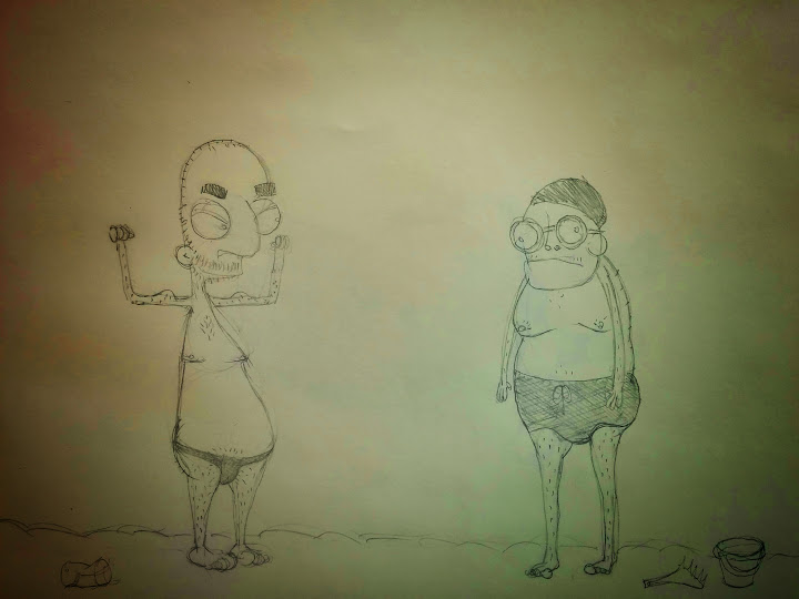 termine di paragone è il cosiddetto uomoranocchia! Età avanzata, capacità visiva ridotta, gambe lunghe e secche, mutandone ascellare, busto cortissimo, cuffia proteggi cute dal sole più che dall'acqua, sguardo