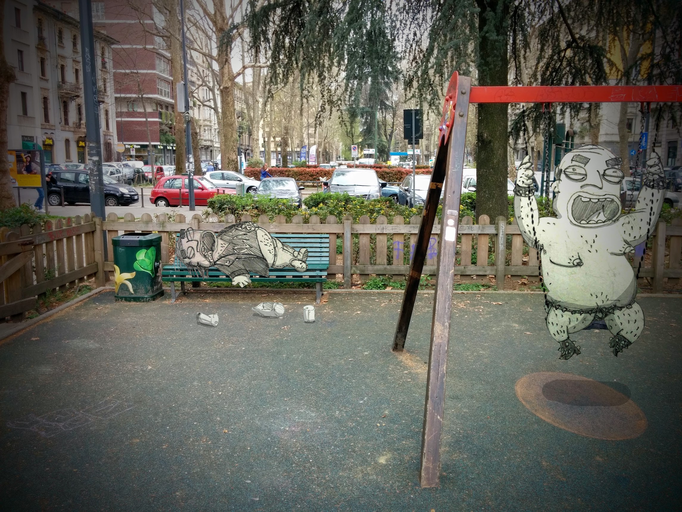 Finito il calvario lavorativo di Stupid Dave (e anche la resa dei conti), tutto torna alla normalità. Ozzi si ubriaca quotidianamente alla luce del giorno stravaccandosi sulle panchine del parco giochi. Non che sia ben frequentato il parchetto... Un essere budinoso si diverte sull'altalena, probabilmente riuscendo a insozzarne la seduta col suo sudore appiccicaticcio e maleodorante. Poveri bimbi, non fateli uscire dall'asilo, non suonate la campanella!