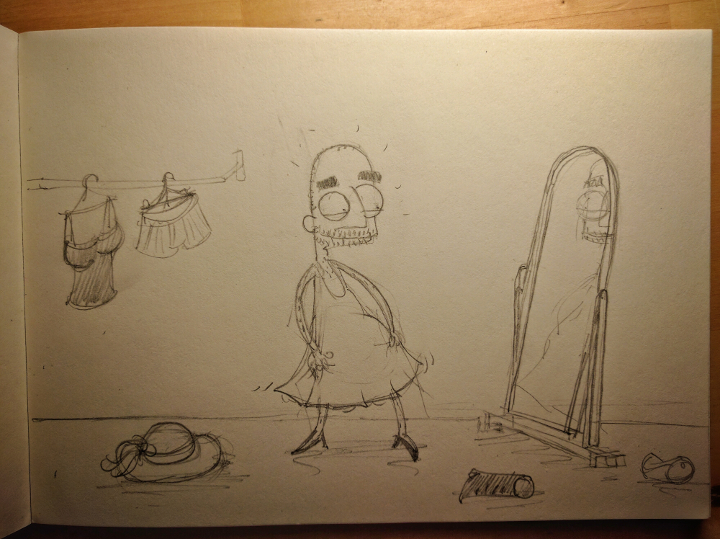 Un entusiasta (stranamente) Stupid Dave è indeciso su quale mise indossare in occasione di un grande evento... "Cosa mi metto? Cosa mi metto?" ride tra sé e sé come una scolaretta-dai-primi-pruriti-avida-lettrice-di-Cioè... Ma di che evento si tratta? Chi l'ha invitato? Occhio Dave, siamo entrati di diritto in autunno, periodo di violenza cieca e inaudita negli ultimi anni!