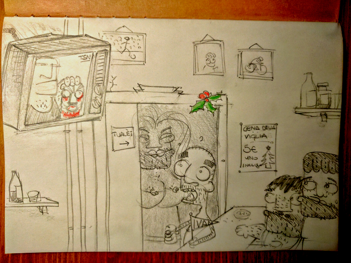 il Baffo intento a organizzare la cena della Vigilia riciclando gli avanzi di qualche giorno prima e