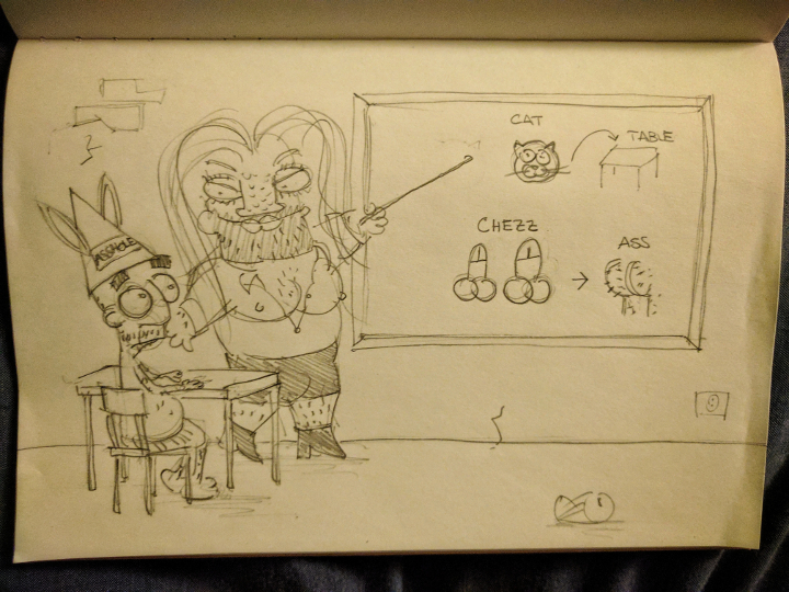 (??) ad approfittare a ripetizione di te, caro Dave! "Repeat: the cat is on the table, the chezz are in the ass!".