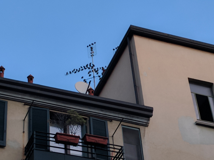 Tanta giustificata preoccupazione per Giuàn nelle settimane passate! Sono tornati i maledetti storni e TeleSciusciaNèbia ne mostra le immagini in anteprima: "EMERGENZA STORNI: porte e finestre serrate, non uscite per alcuna ragione, nutritevi di quello che avete in casa". Del pessimo vino sfuso nel caso del nostro eroe. Maledetti, ancora un autunno segnato da scagazzate e attacchi volanti (e violenti).