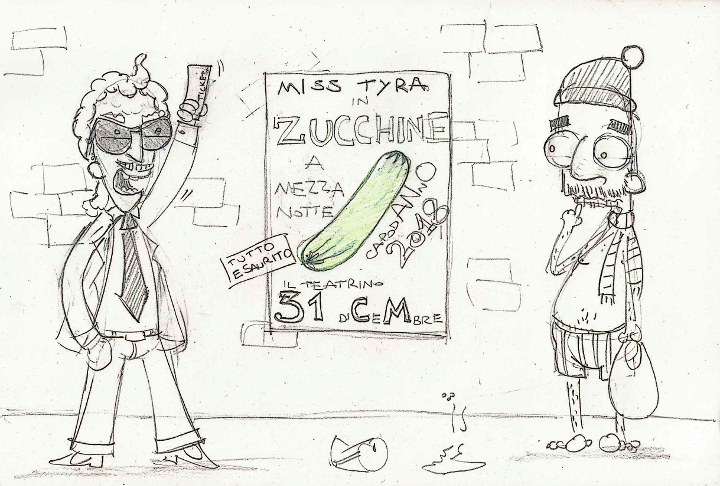 Dave giustamente assalito da numerosi interrogativi alla lettura del nome della protagonista, come sempre, dello show: "Miss Tyra". Cummenda, non impari mai dai tuoi sbagli! E tu Dave, non ti crucciare per l'occasione persa (???), meglio un brindisino in famiglia a mezzanotte che iniziare l'anno con l'ano rotto l'ortolano!