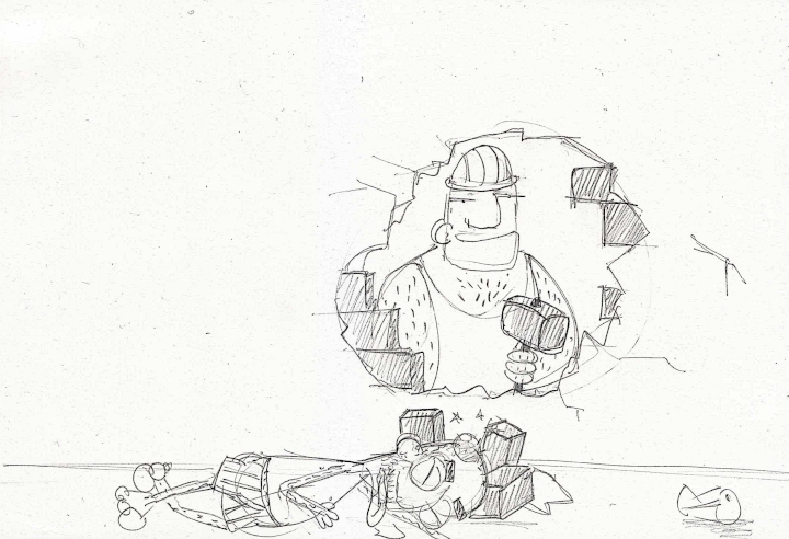 Proprio oggi sono inziati i lavori di ristrutturazione in casa. Sopralluogo d'ordine col geometra, incaricato di seguire i lavori, e con la squadra di operai. Certo che se Stupid Dave non si mettesse di mezzo... "Magari potremmo demolire questo muro". BOOM! Detto, fatto.