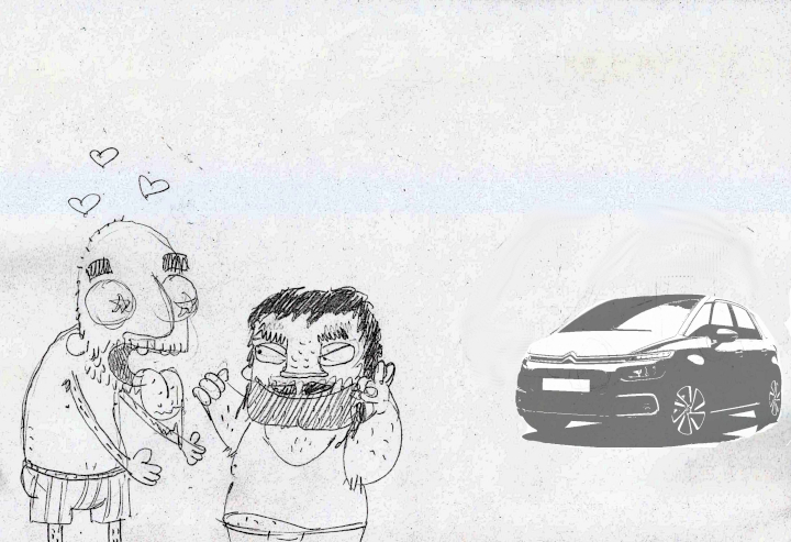 In questo periodo di cambiamenti Stupid Dave presta molta attenzione alle misure. La famiglia si allargherà, la casa nuova è più grande, ma qualcosa resta piccolo. Certo, il pipino: ma non stiamo parlando di quello. L'automobile: la gloriosa Seat Ibiza1.4 benzina allestimento Style difficilmente potrà servire dignitosamente la family. Occorre informarsi, valutare bene i costi e... Mah... Mah... Un abile venditore coglie l'occasione e mostra la C4 Picasso: FAN-TA-STI-CA! Dentro: un'astronave, grandissima, comodissima, allestitissima! Fuori bel design in misure non eccessive. E' fatta, dev'essere tua Dave! Aspettane una usata nella concessionaria ufficiale e preparati a soffrire ancora per il parcheggio: ma bello comodo!