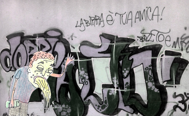 mezzanotte passata, ma useless thursday non molla! quresta settimana ispirazione dettata da un "pezzo" disegnato in via morimondo a milano vicino al mio lavoro. doppia rappresentazione, il