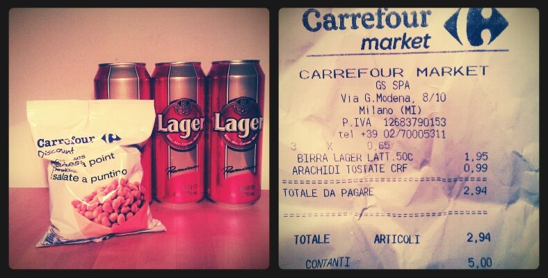 credo di avere un problema :) l'altra sera tornando a casa mi sono detto: "ho proprio voglia di una bella birretta, adesso mi fermo al supermercato e con un massimo di 3 euro devo fare scorta". missione difficile ma non impossibile: basta andare sulle birre che io definisco "ignoranz" o "infami" ovvero quelle che costano abbondantemente meno di un euro, come una settimana fa. niente brüderhof questa volta, bensì l'anonima "lager" del carrefour!
