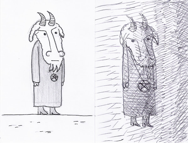 il primo è bafometto, il diavolo, belzebù, andreotti, satana, chiamatelo come volete. veste austera, viso e corna caprine. suo compito è quello di tentare gli abitanti della città per indurli al peccato e all'atto impuro, qualunque esso sia. dovesse malauguratamente incrociare i protagonisti di useless thursday reterebbe disoccupato. e scandalizzato. :O