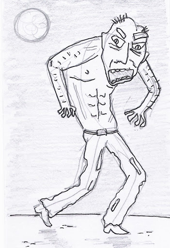 il secondo è uno zombie un pò adirato. sono smepre stato attratto dalla figura dello zombie, abitante dell'oltretomba che insidia i vivi. ho cercato sempre di disegnarne qualcuno decente, questa volta sono abbastanza soddisfatto.
