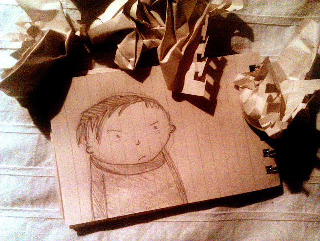 nel tentativo di aumentare la produzione, e complice la scarsa vena creativa, ho buttato via mezzo blocchetto: alla fine è rimasto solo questo... coso... contornato da foglietti appallottolati. mah...