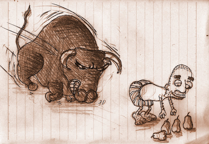 con quattro "e" in onore della compagine iberica che ci ha strapazzato per benino. ma come? proprio l'unica volta in cui stupid dave non è distrutto dall'alcol rischia la vita nel modo più cretino? intento a raccogliere quattro belle pere da terra, non si accorge di aver provocato il toro iberico col suo culone mutandato in bella(?) mostra! attento!!! senza la sua pozione magica (birra a volontà) non so se riusciremo a vederlo (intero) nelle prossime uscite!