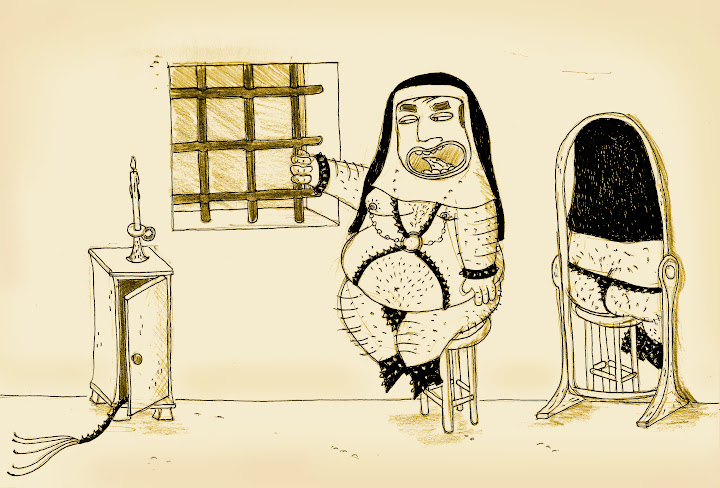sadomasokino veste (?) i panni del monaco... ehm... monaca (???) di monza: costretto a vivere in una cella di clausura e a poter parlare solo attraverso